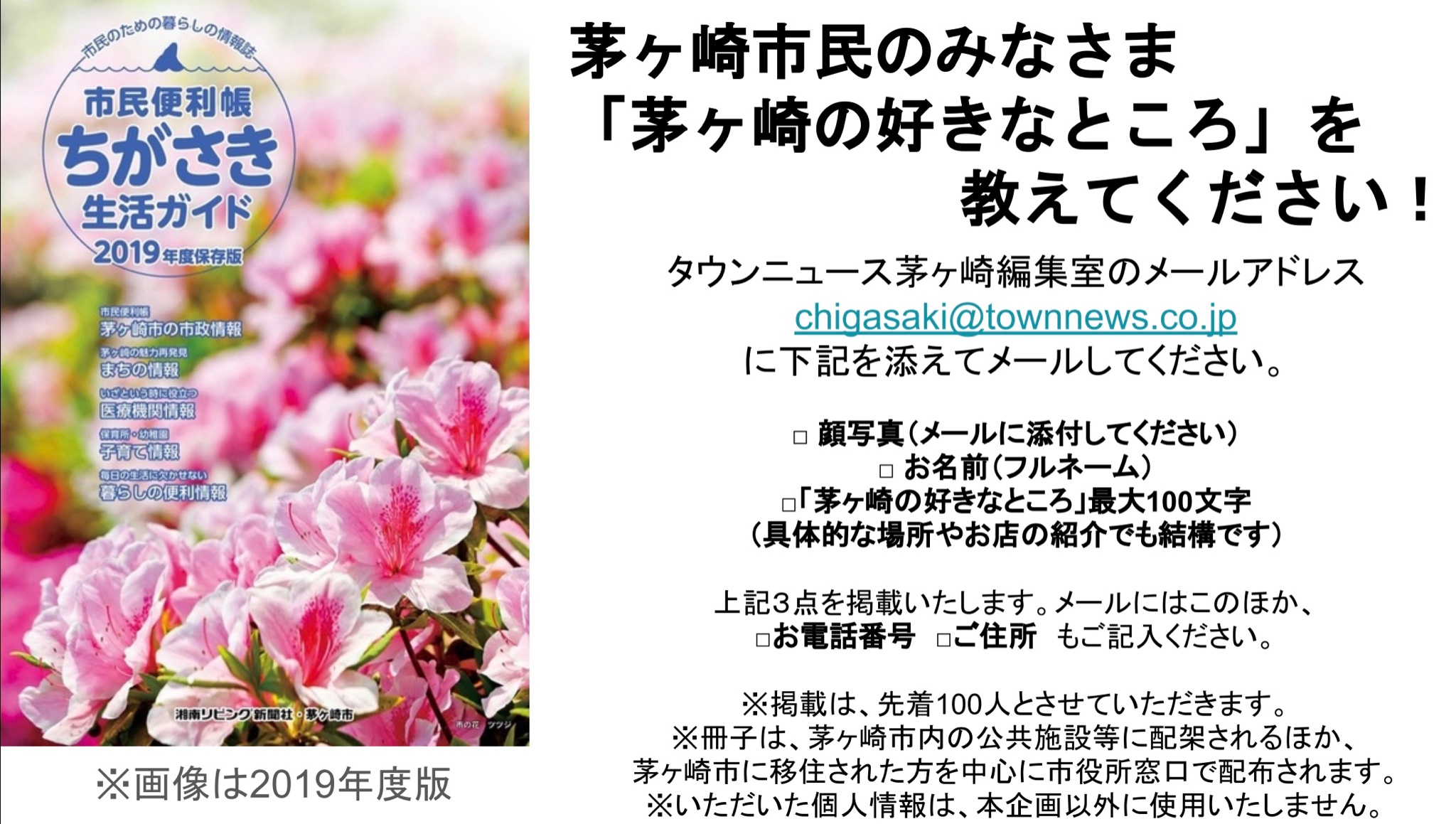 タウンニュース茅ヶ崎編集室 On Twitter 茅ヶ崎の好きなところ 大募集 タウンニュース社は現在 2020年度版 茅ヶ崎市民便利帳 を制作しています この冊子で 市民100人に 茅ヶ崎の好きなところ を紹介していただく特設ページを企画しました 参加者募集中