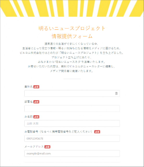 明るいニュースプロジェクト 本日より開始 報道関係者向けニュースレターを無償で制作 配信 Pr会社 ビルコム株式会社