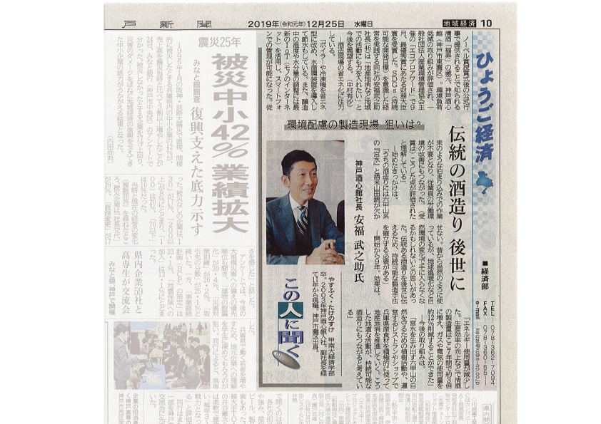 神戸新聞にて環境配慮への取り組みについて取りあげていただきました 新着情報 神戸酒心館