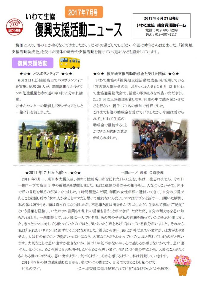 いわて生協 復興支援活動ニュース 2017年7月号 いわて生活協同組合