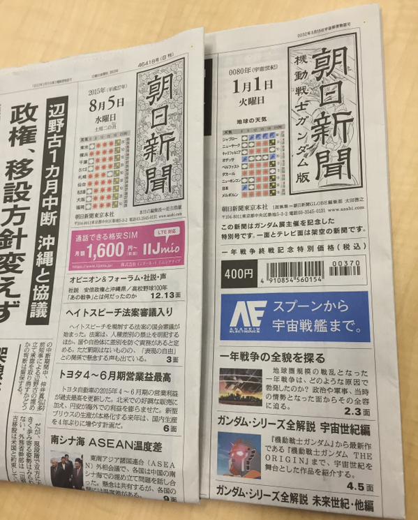 ニュース 明日8月6日朝日新聞ガンダム版が発売 追記あり 気になる情報ブログ