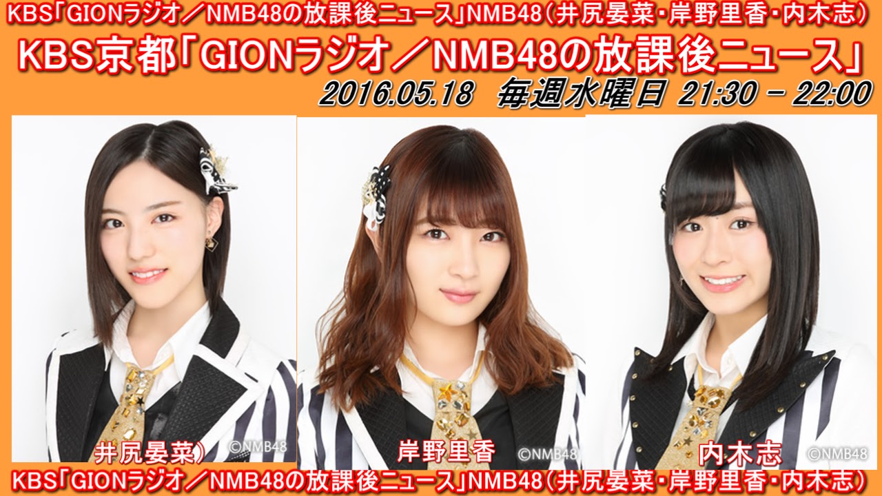 Akb48g Radio Station Kbs Gionラジオ Nmb48の放課後ニュース Nmb48 井尻晏菜 岸野里香 内木志 20160518